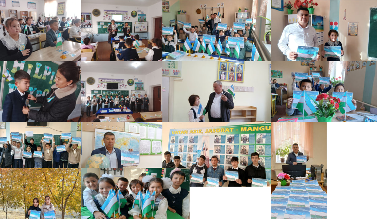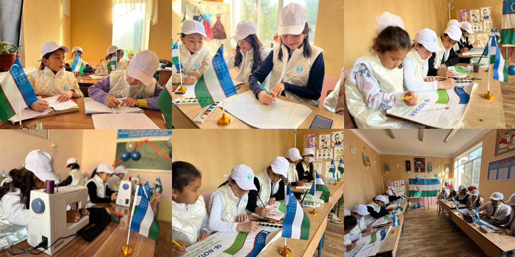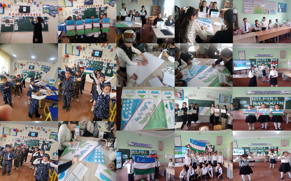 O‘quvchilar qo‘llarida davlat bayrog‘ini baland ko‘tarib, Vatanga bo‘lgan mehr, faxr va hurmat tuyg‘ularini ifoda etdilar. Shuningdek, ular bayrog‘imizning ramzi, ranglari va undagi yulduz hamda hilolning ma’nosi haqida o‘zaro fikr almashdilar.